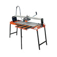 Single-phase motor 230V~50Hz 1400 Watt; Sliding cutting head and tilting engine; Switch with release coil; Diamond disk Ø200 c/c; Folding Legs; Pump for water recycling type S1